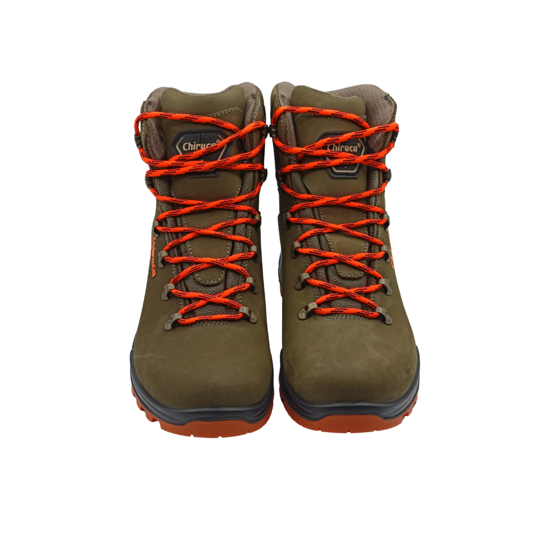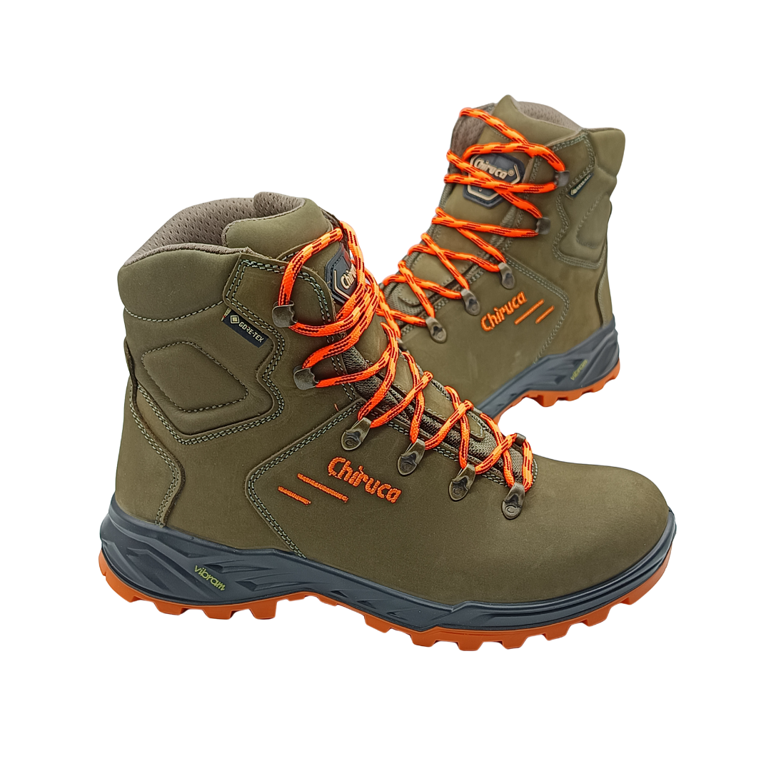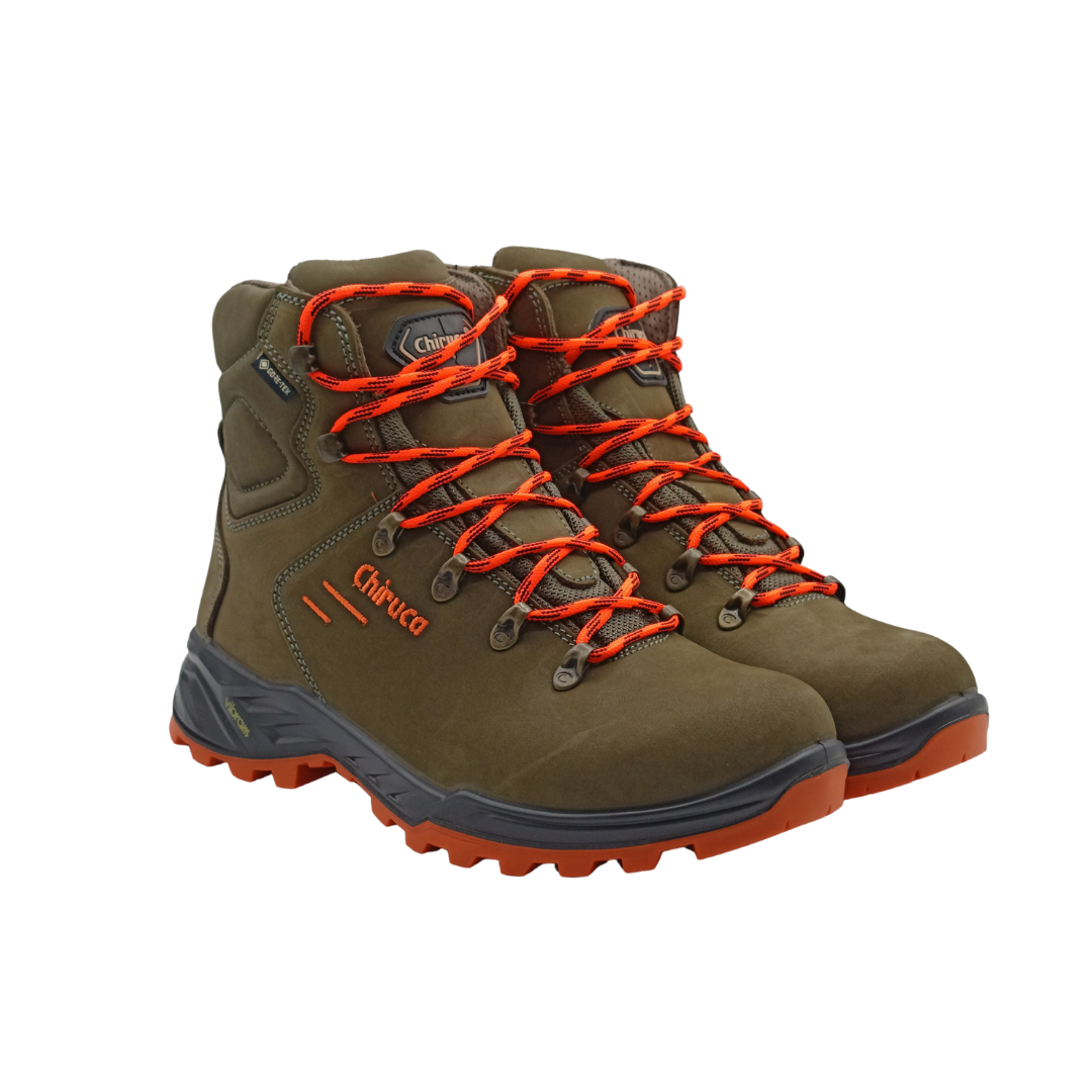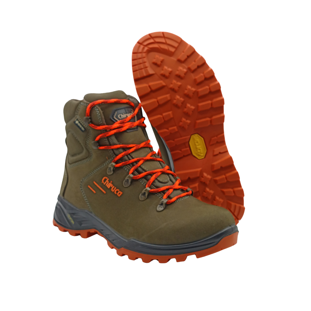 Bota de piel nobuck, napa nobuck hidrofugada, membrana Gore-Tex impermeable y transpirable; piso bidensidad Hawk con entresuela de poliuretano y patín de caucho Vibram® Impulse Hi-Vis que proporciona amortiguación y adherencia.