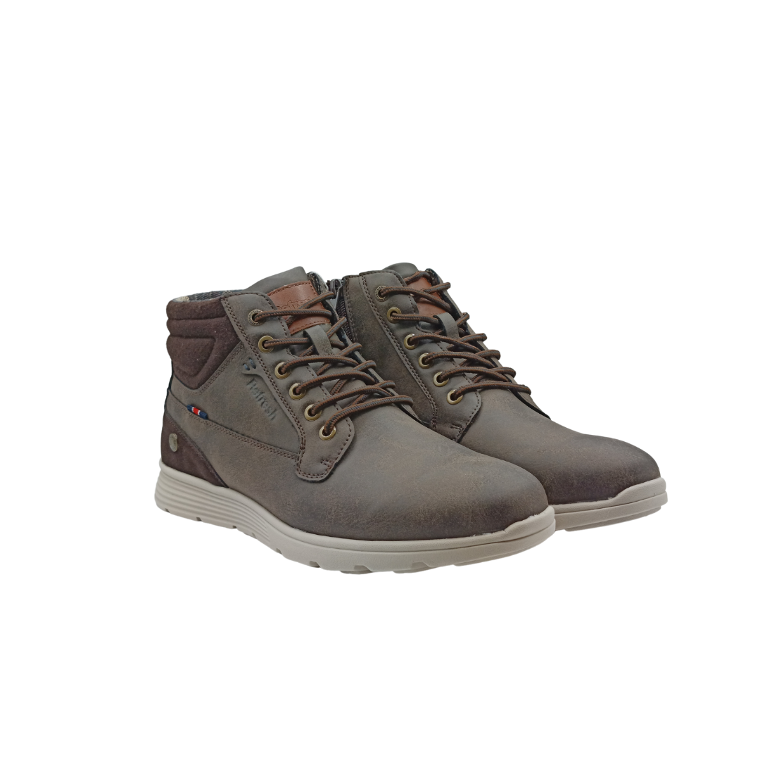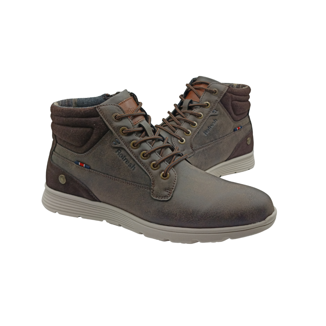 Botín tipo zapatilla de hombre, de la marca Refresh. Fabricado en material que imita a la piel. Collarín acolchado. Cierre mediante cremallera interior. Cordones regulables para un mejor ajuste. Suela de goma. Con plantilla extraíble. Este modelo ha obtenido el certificado vegano por la organización mundial PETA (Organización de los derechos de los animales).