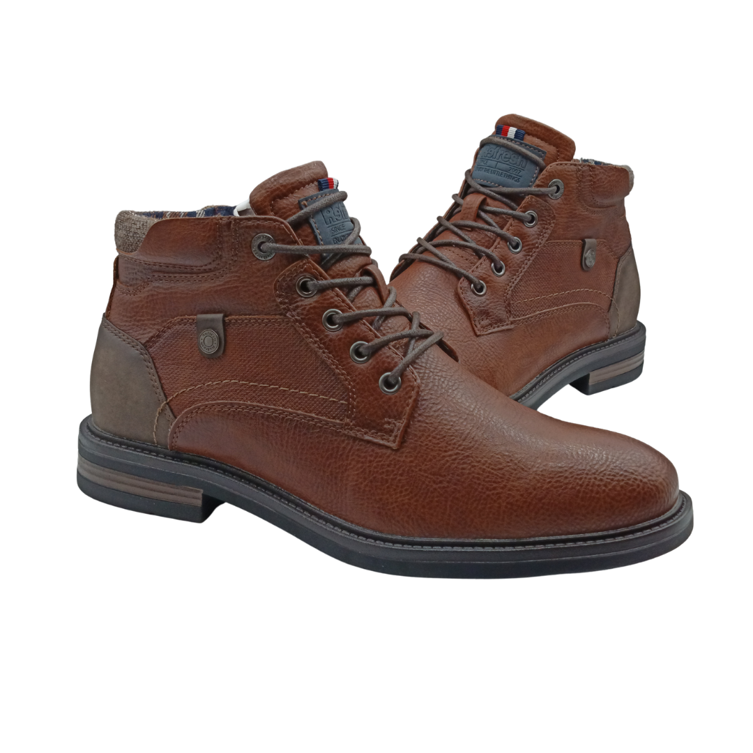 Descubre el confort y estilo casual con nuestros Botines para hombre REFRESH 172895 en distinguido color camel. Diseñados pensando en el hombre moderno, estos botines ostentan un versátil tipo de cierre con cordones y cremallera para adaptarse perfectamente a tu día a día. De categoría botas de vestir pero con un toque notablemente casual, estos zapatos combinan con una amplia gama de outfits. El material exterior es de resistente y elegante polipiel, mientras que el interior es de suave textil para garantizar la comodidad en cada paso. La suela plana de composición sintética asegura una excelente durabilidad. Elegancia y comodidad se unen en estos botines, ¡un acierto seguro para completar tu look!