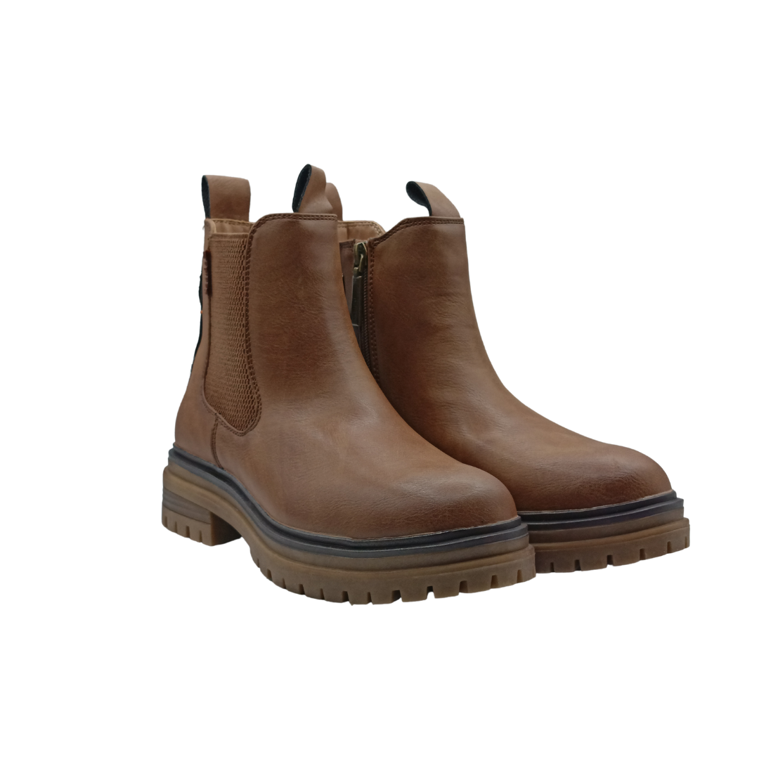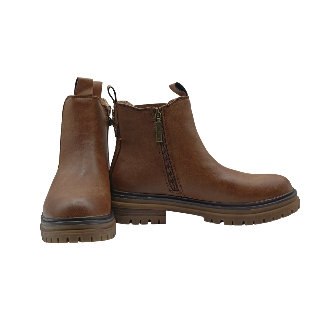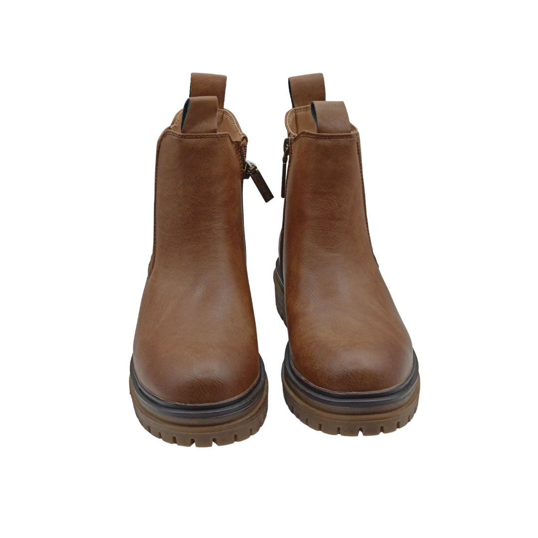 Descubre un botín de mujer de la marca Refresh, fabricado en material que imita a la piel. Este elegante diseño tipo chelsea cuenta con una cremallera interior y un tirador delantero y trasero para facilitar su ajuste. Su gruesa suela de goma antideslizante y la plantilla extraíble aseguran comodidad y estilo en cada paso. Además, este modelo está certificado como vegano por PETA, garantizando una elección ética y responsable.
