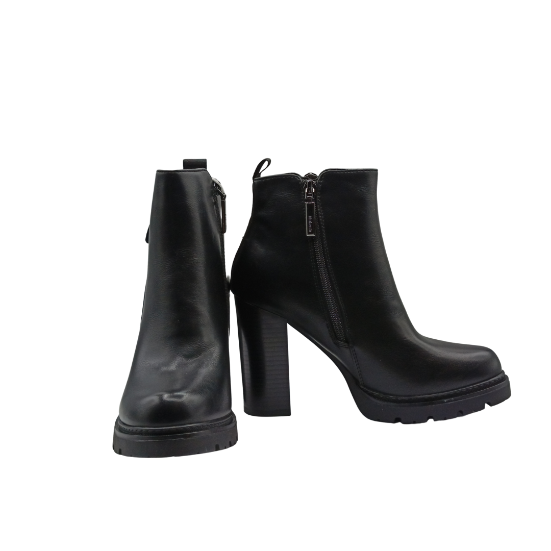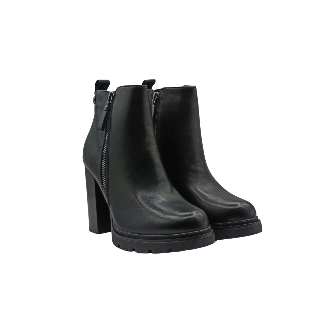 Botín de mujer, de la marca Refresh. Fabricado en material que imita a la piel. Cremallera lateral decorativa. Cierre mediante cremallera interior. Tirador trasero para facilitar la puesta. Suela de goma antideslizante. Tacón de 10 cm. Un Botín versátil para completar tus looks esta temporada. Este modelo ha obtenido el certificado vegano por la organización mundial PETA (Organización de los derechos de los animales).