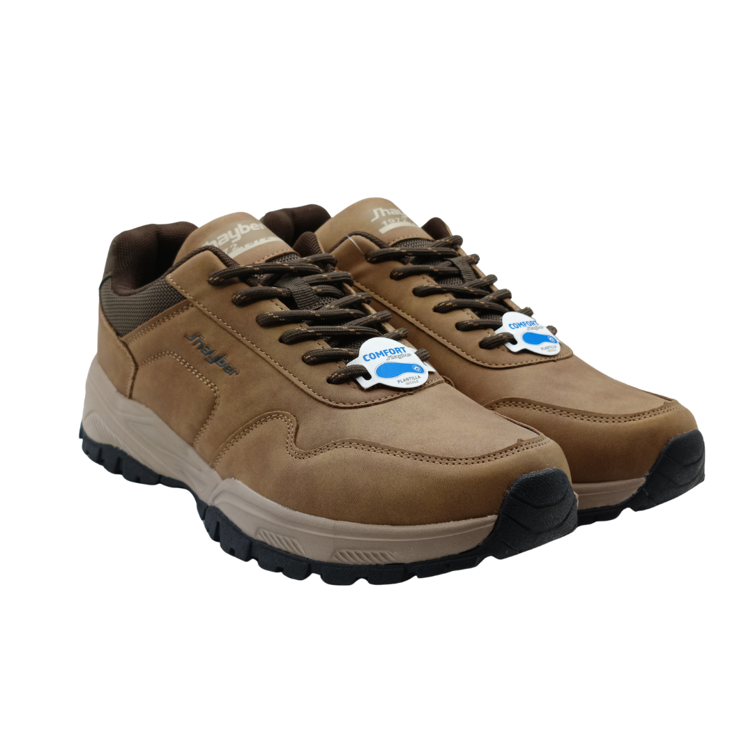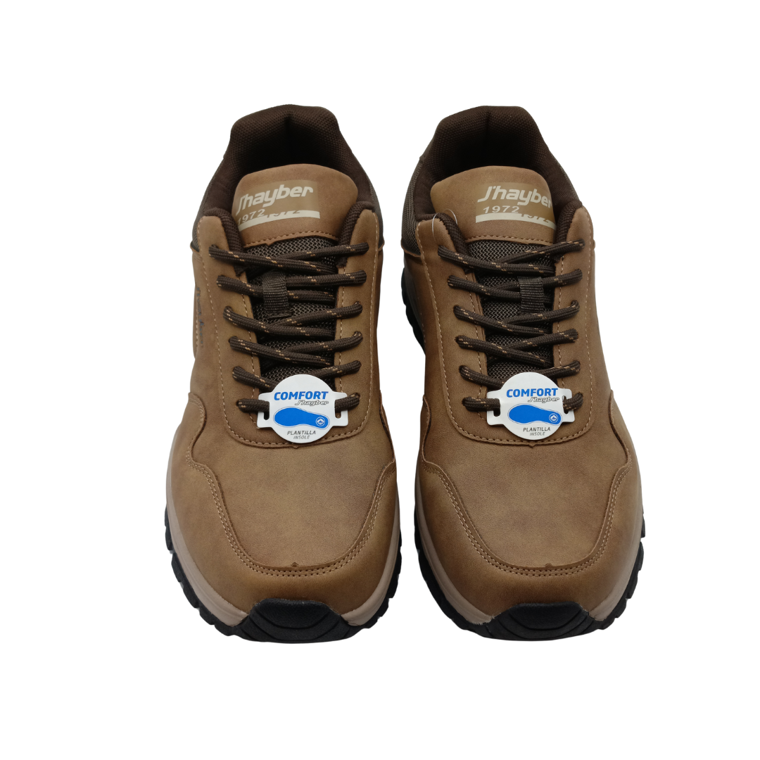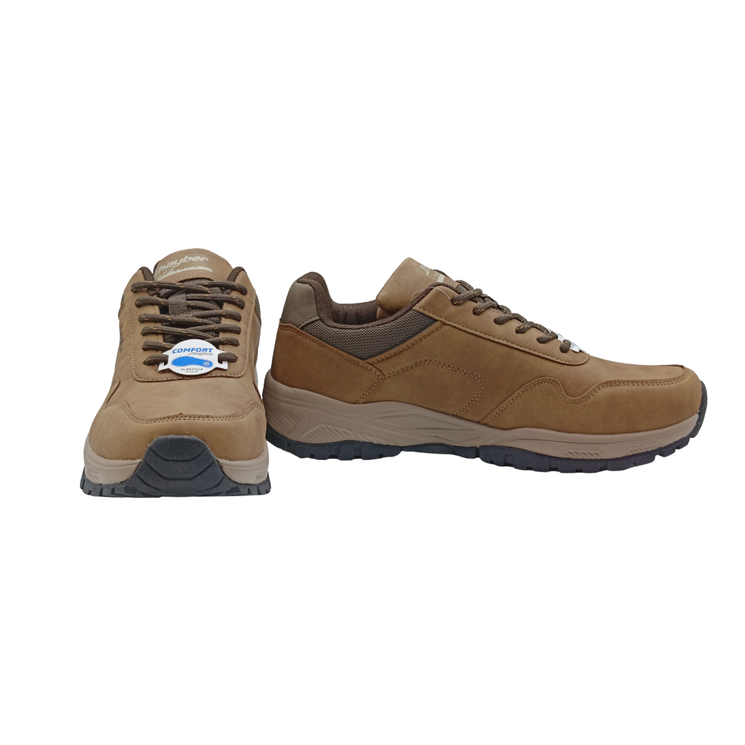 Calzado travel de hombre de color camel con suela en contraste. Su diseño combina líneas sobrias con una estructura funcional pensada para el uso diario. La plantilla Comfort Travel ofrece confort prolongado, soporte adecuado y ayuda a reducir la fatiga en caminatas o jornadas activas. Perfecto para quienes buscan un estilo discreto y versátil.