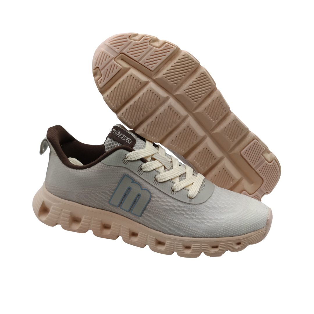 Zapatillas de color blanco para mujer, modelo Cube de Mtng de estilo deportivo. Este diseño destaca por su estructura ligera y transpirable. La suela gruesa y dentada no solo aporta un diseño moderno, sino que también garantiza una pisada más cómoda