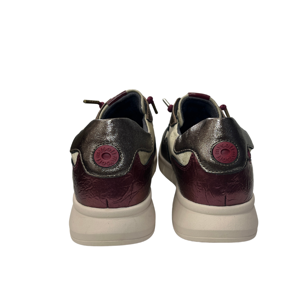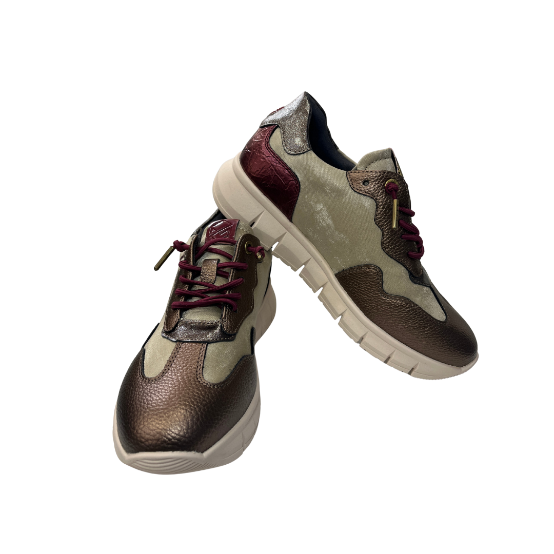 Deportivas para mujer 25M640 de MYSOFT. De Nylon y detales en PU Leather efecto metalizad. Cierre de cordones elásticos para mejorar su puesta. Interior en tejido suave con plantilla extraible memory foam, para una pisada super comoda. Suela flexible y ligera con pequeña cuña de unos 3cm de altura.