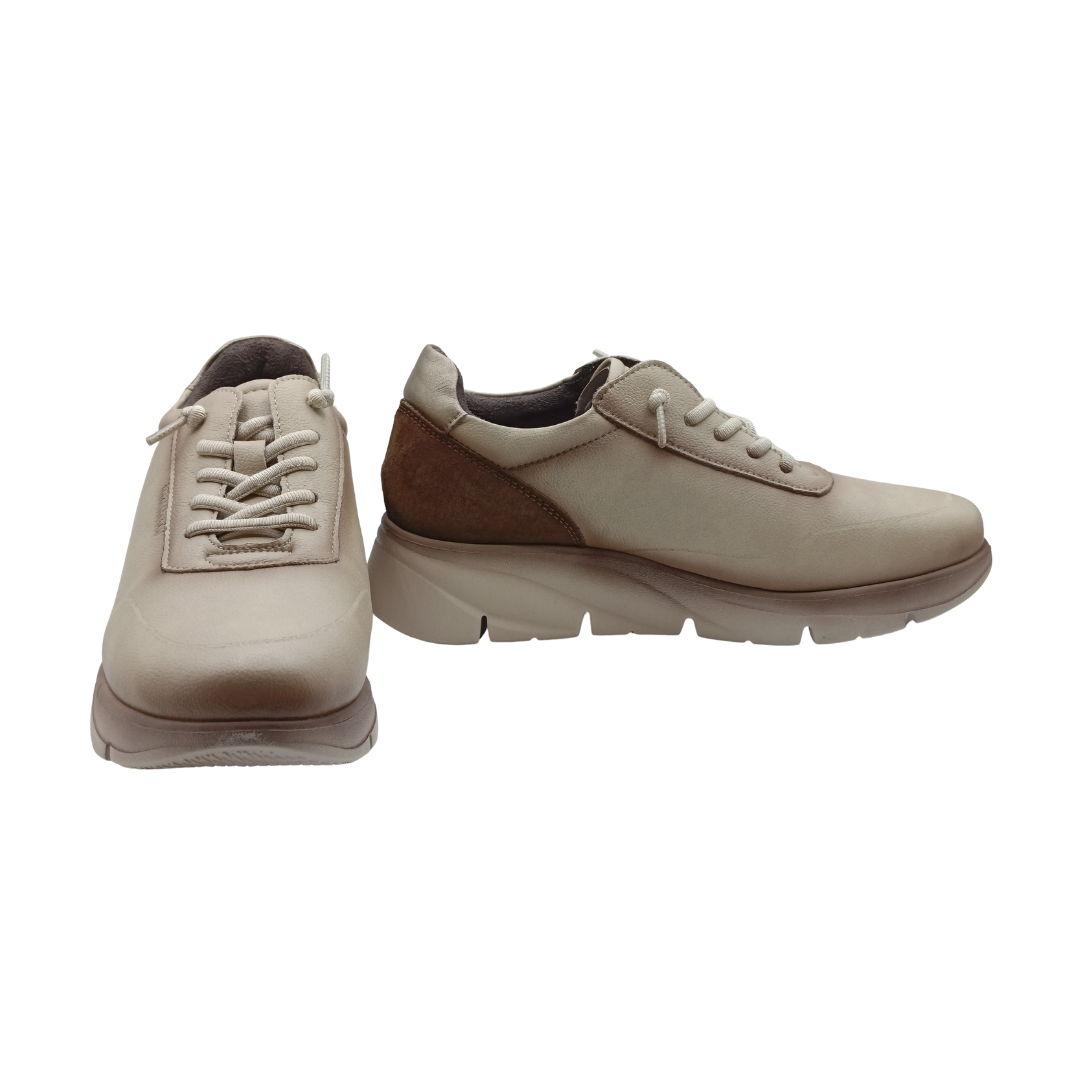 Deportivo Blucher Khloe Marín plano sport casual, en color hielo con cordones elástico, para facilitar su calce y descalce, ya que se adaptan correctamente a tus pies, y sobre todo, si son esos pies sufridos que no aguantan cualquier zapato.