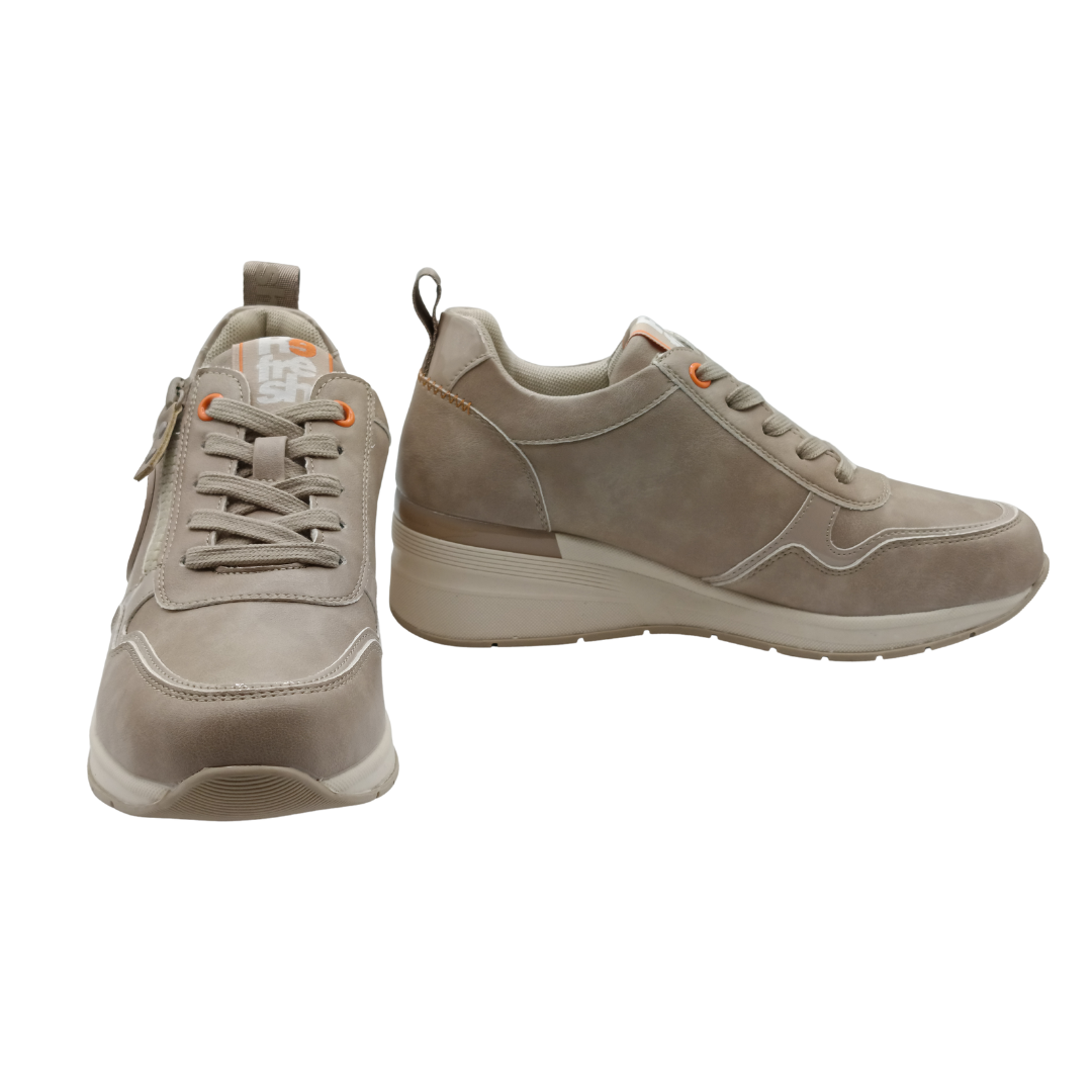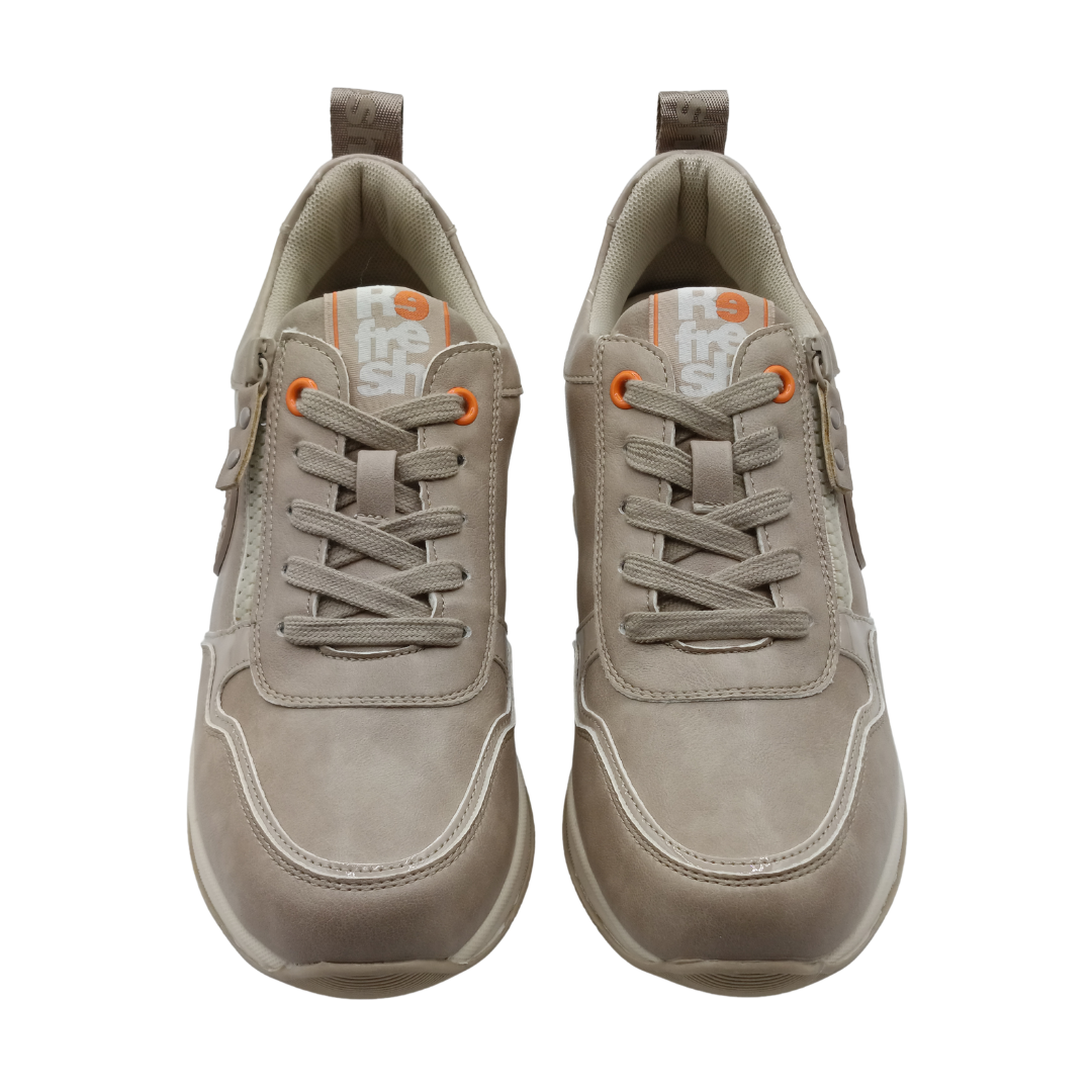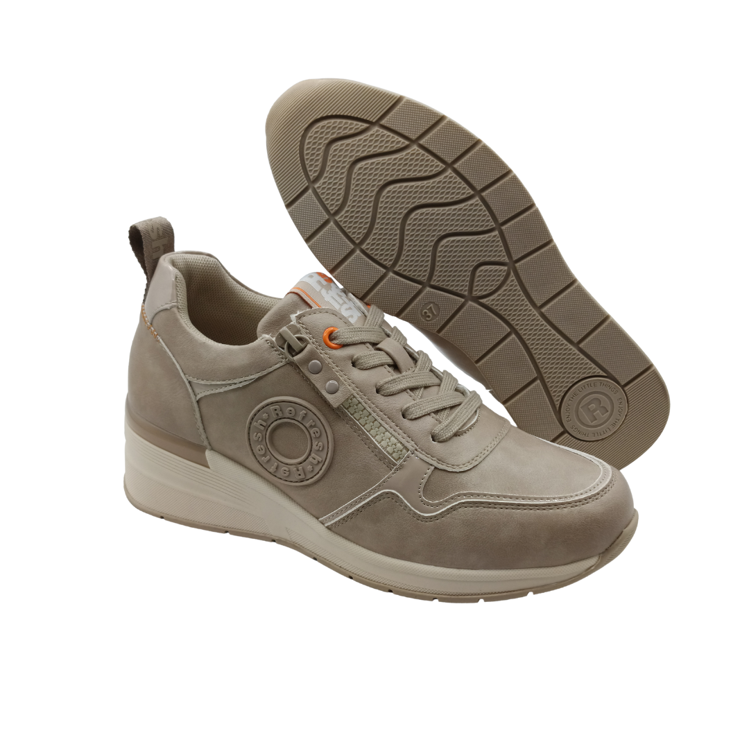 Zapatilla de mujer, de la marca Refresh. Fabricada en material que imita a la piel. Cremallera lateral con función. Cordones regulables. Una zapatilla perfecta para completar tus looks esta temporada.
